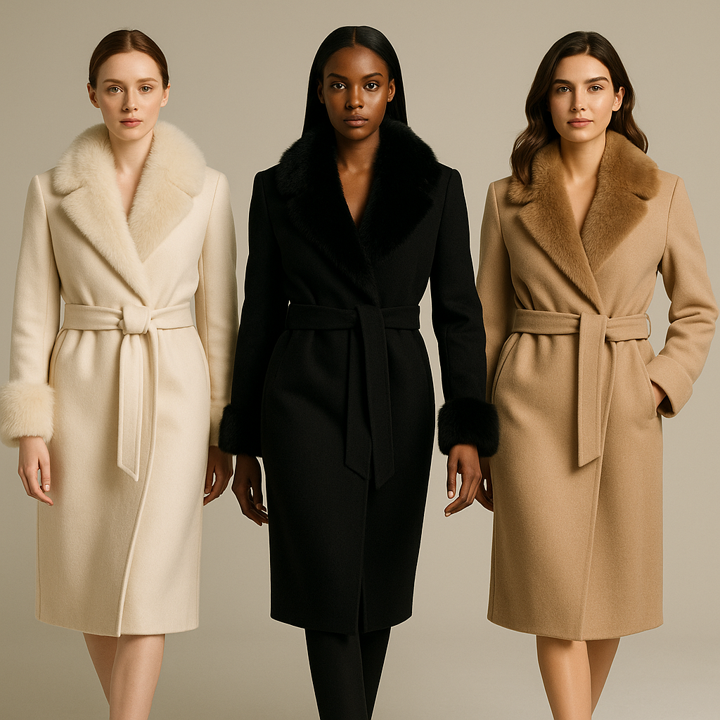 Hot Sale Female Classic Woolen Wool Fox Fur Collar and Cuff Decoration Women Winter Woolen Slim Belt Long Woolen Coat